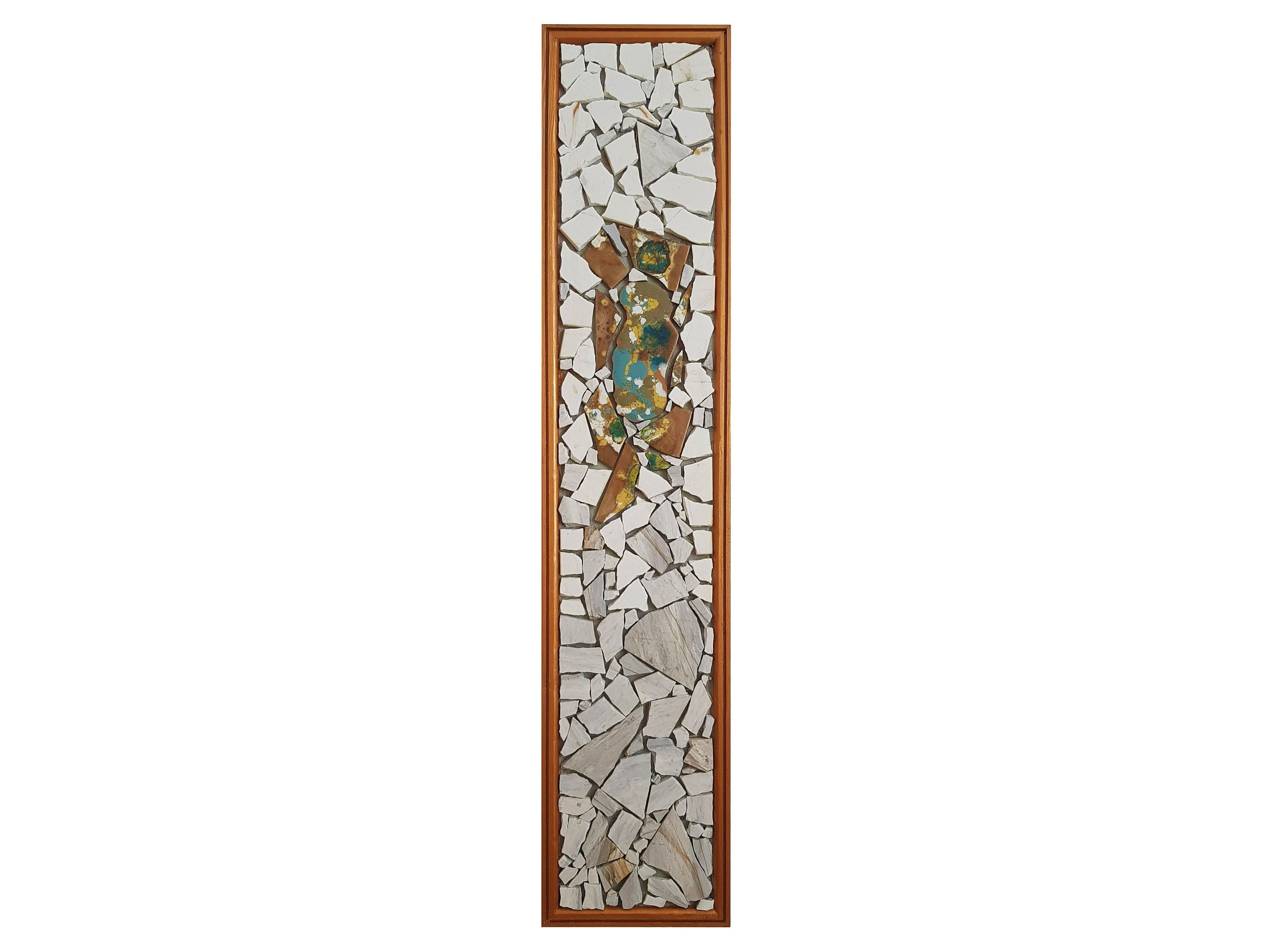 This original wall mosaic relief is one of the latest artworks of the talented Bulgarian contemporary sculptor Ognyan Hristov, deeply inspired by modernism, organic abstraction and zen art. It can be easily adapted to different interior solutions in a wide range of styles. The work has the opportunity to enter into a general composition in both dynamic and calm design spaces. On the other hand, wall mosaics can be displayed appropriately and impressively as stand-alone artworks. Part of the advantage of these works is the conceptual-ideal approach in their conception and creation, also the peculiar treatment of the mosaic in a free way allows for easy adaptation of the works. The abstract-expressive nature of the colors used in the work makes it easily noticeable and enables it to become a strong accent and an attractive visual center in any interior. Their mobility and simple way of hanging makes them easy to maintain and convenient to exhibit and change their location. The materials from which they are made are natural. Another interesting element is the usage of semi-precious stones in the mosaics such as - agate, rhodonite, jasper, etc., as well as enamel, glass, fossils and various types of stone. The work is framed with natural wood, which gives warmth and complements the natural materials used. It is one extraordinary masterpiece and exquisite modern home décor.